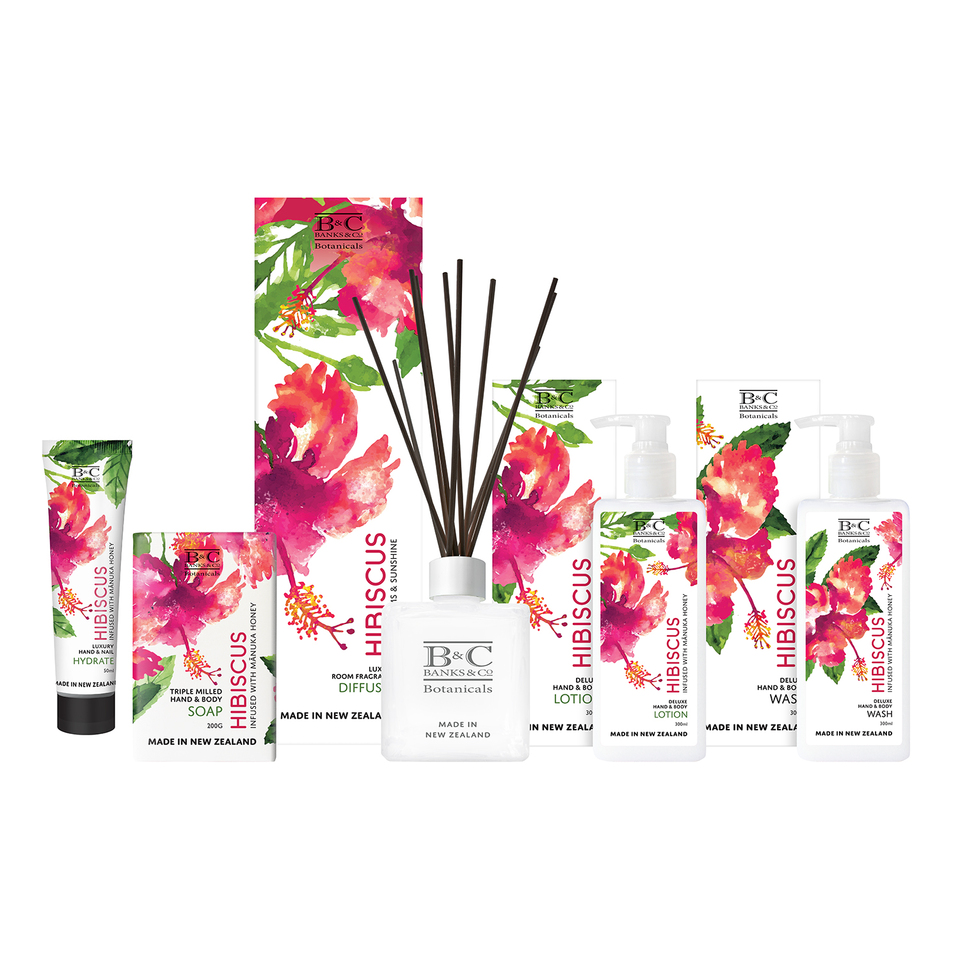 The bountiful South Pacific with it’s heavenly, rich florals, beautiful colours, ripe citrusy limes and sweet lychee, fill these body treats and room fragrances with relaxation. A slice of the warm tropics that’s yours to enjoy. Presented in hand-painted watercolours unique to Banks & Co.